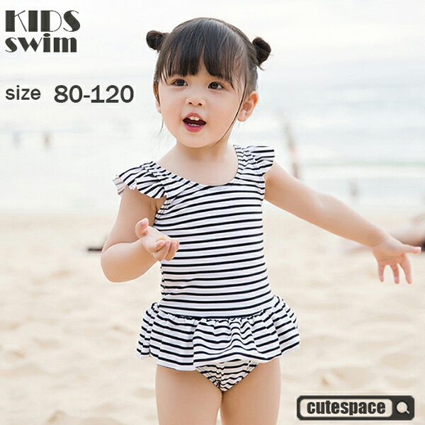 子供水着 女の子 水着 キッズ水着 ワンピース 女児 ストライプ 子供用水着 こども みずぎ かわいい 赤ちゃん フリル 80 90 100 110 120cm