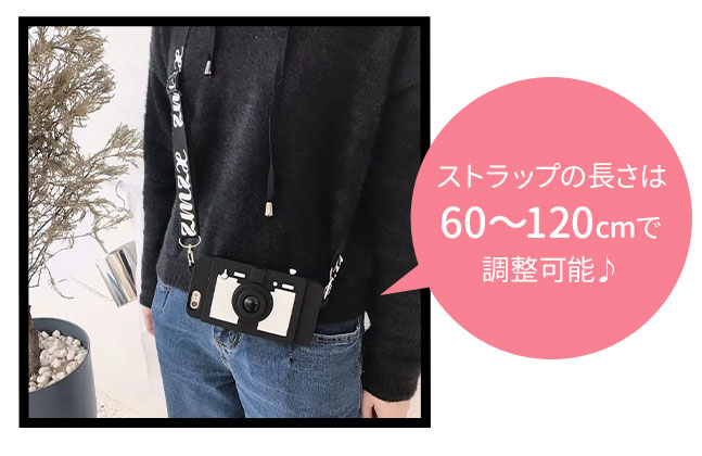 【送料無料】 ストラップ付き カメラ型 iPhone ケース 肩掛け可能 ブラック シルバー ショルダーストラップ付 iphone11 11Pro ProMax XR XS xsmax 8 7 IPHONE PLUS 7plus 8plus SE 6s S 5 アイフォン インスタ映え 立体的 ジャケットタイプ メンズ レディース スマホ カバー