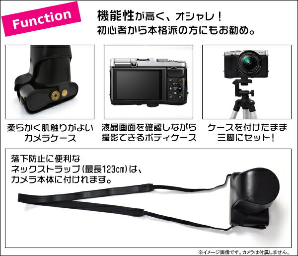 送料無料【FUJIFILM X-E1 レンズキット対応 カメラケース&首さげ・肩掛け可能ネックストラップ】ブラック/ブラウン 三脚使用可能 (合成皮革 黒色 茶色 富士フィルム フジフイルム デジカメケース カメラバック)