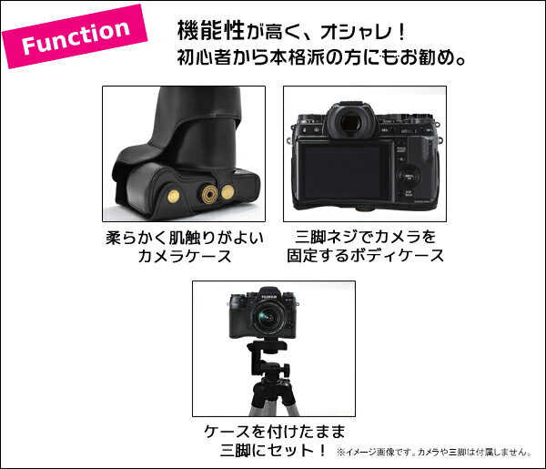 送料無料【FUJIFILM X-T1 レンズキット対応カメラケース&首さげ・肩掛け可能ネックストラップ】ブラック 三脚使用可能 (合成皮革 黒色 富士フィルム フジフイルム デジカメケース カメラバック)