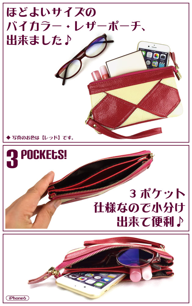 【新作 即出荷 】本革 オリジナル バイカラー マルチポーチ 取り外し可能なストラップ付き 男女兼用 2トーン 4色 3ポケット iPhone6 ケース スマホケース ポーチ コスメポーチ 超軽量 財布 小物入れ 1603 箱付 プレゼント 父の日 10個なら30%OFF