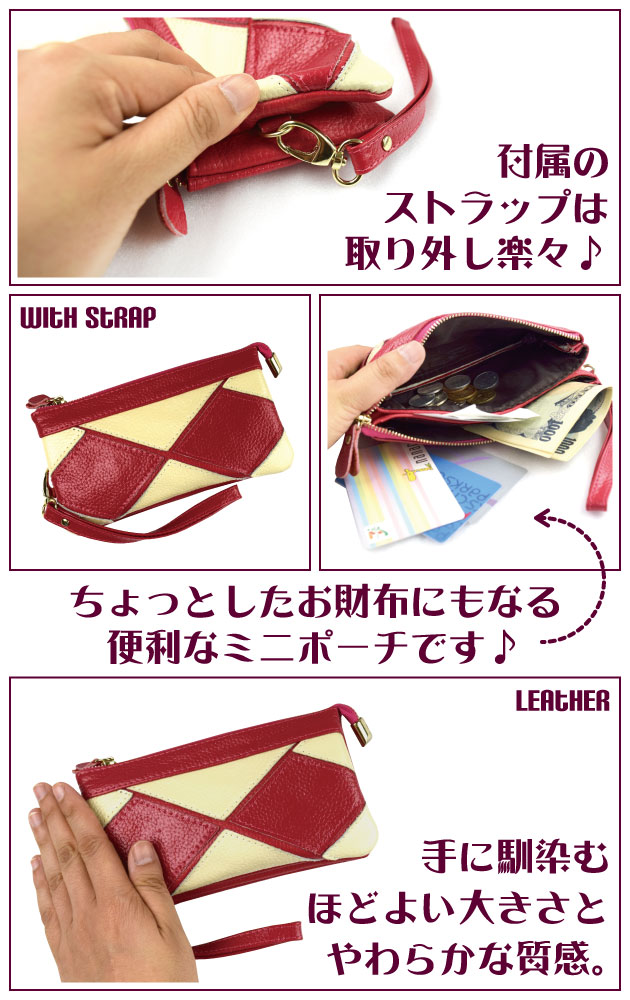 商品説明 男女兼用 本革 バイカラーマルチポーチ 4色 ストラップ付☆