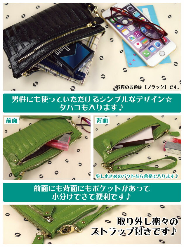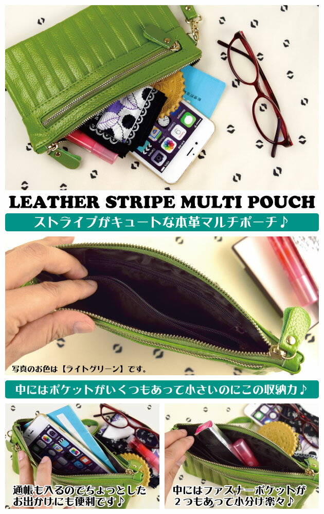 値下げしました!【メール便希望なら全国送料無料】本革 8色 6ポケット オリジナル ストライプレザーポーチ iphone6 plus 対応 ストラップ付き 薄型 軽量 可愛い レザー ポーチ スマホケース 通帳入れ たばこ入れ AZ-1522 プレゼント 父の日 10個なら30%OFF